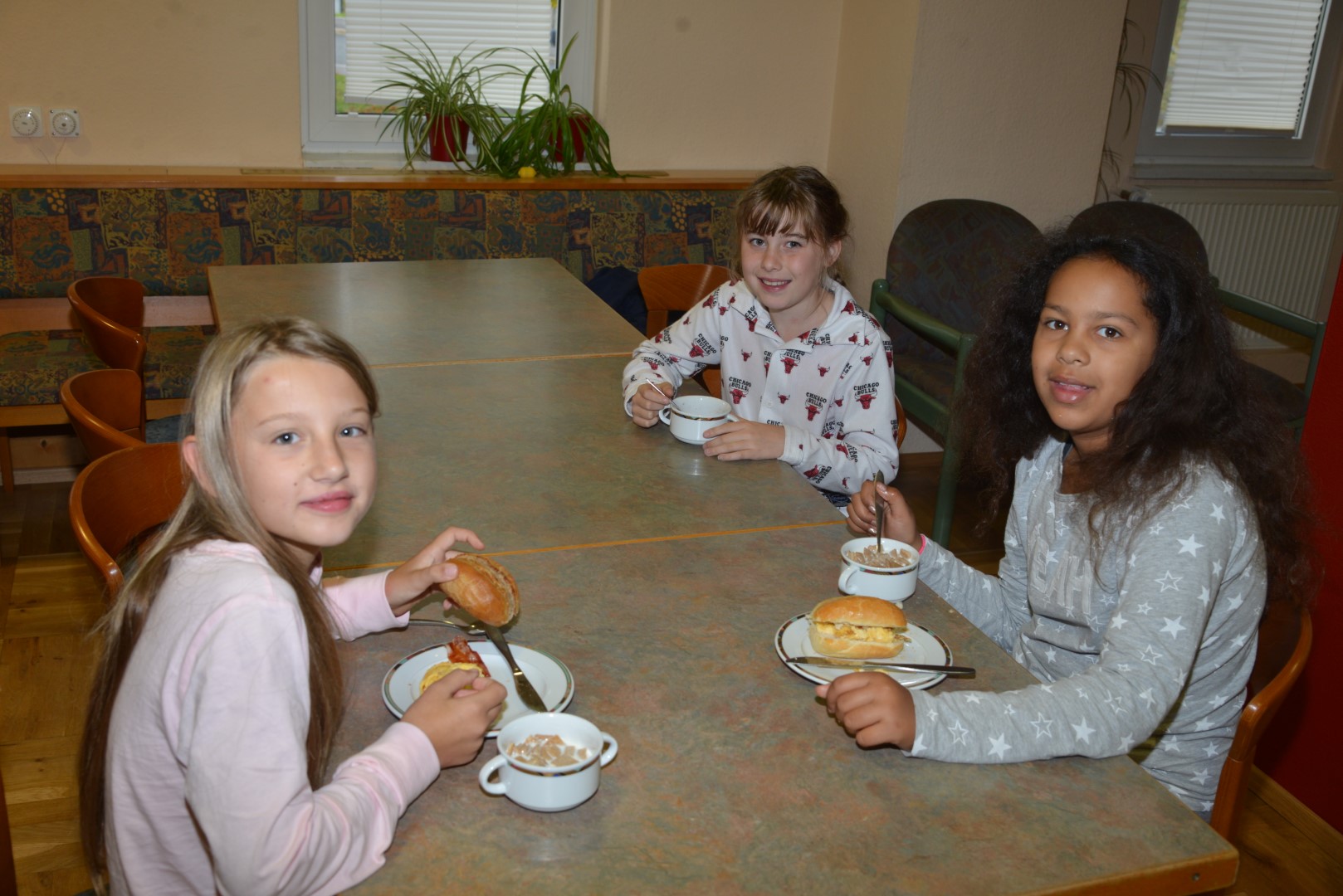 Nach unserem Spaß beim Schwimmen haben wir uns alle geduscht und haben unsere Haare trocken geföhnt. Als wir fertig waren haben wir Kekse bekommen und sind wieder zurück gefahren. Zum Abendessen gab es Currywurst mit Pommes und zum Nachtisch Apfelpudding mit Sahne, wobei ich dachte, dass es Zitronenpudding war…