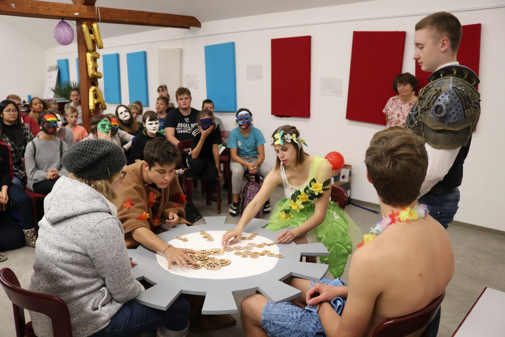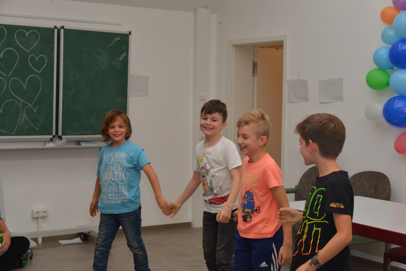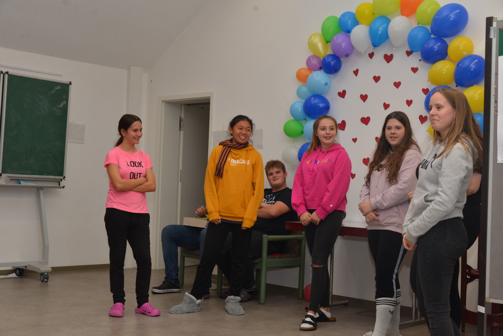 Abends führten wir die Theaterstücke auf und ernteten viel Applaus für unsere Mühe. Der Abend endete damit, dass wir einander nette Sachen auf einen Zettel, der auf unseren Rücken klebte, schrieben.