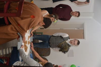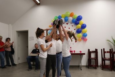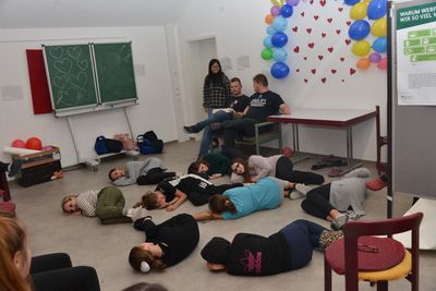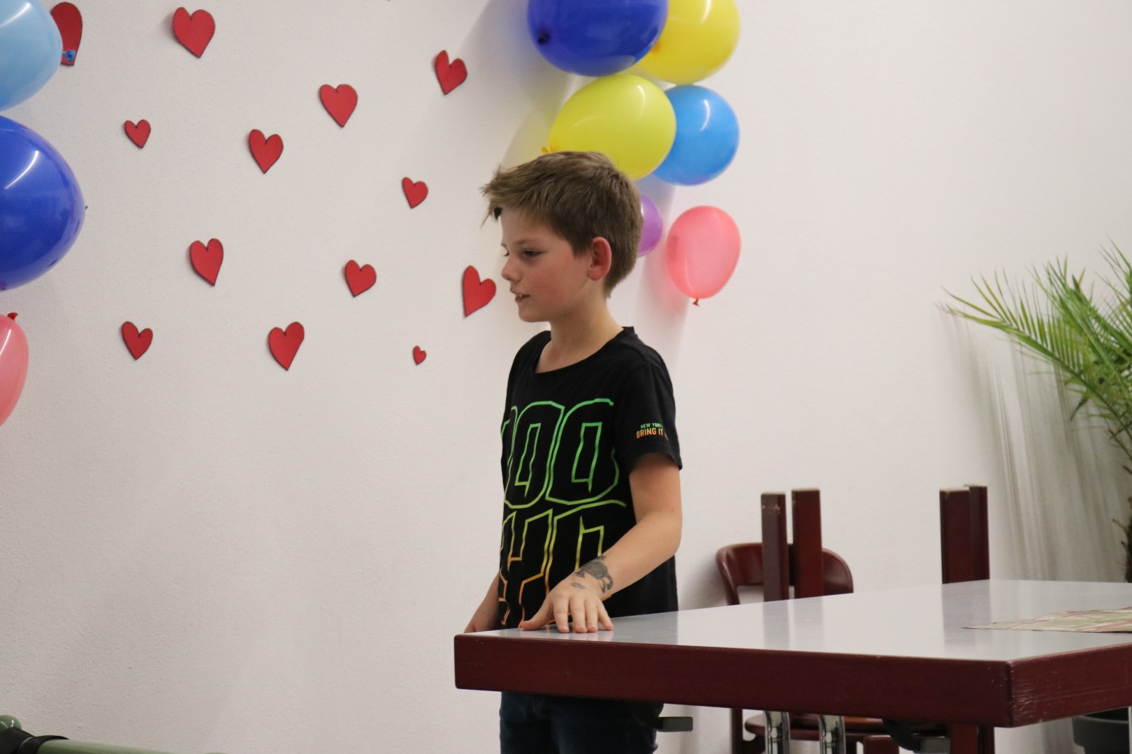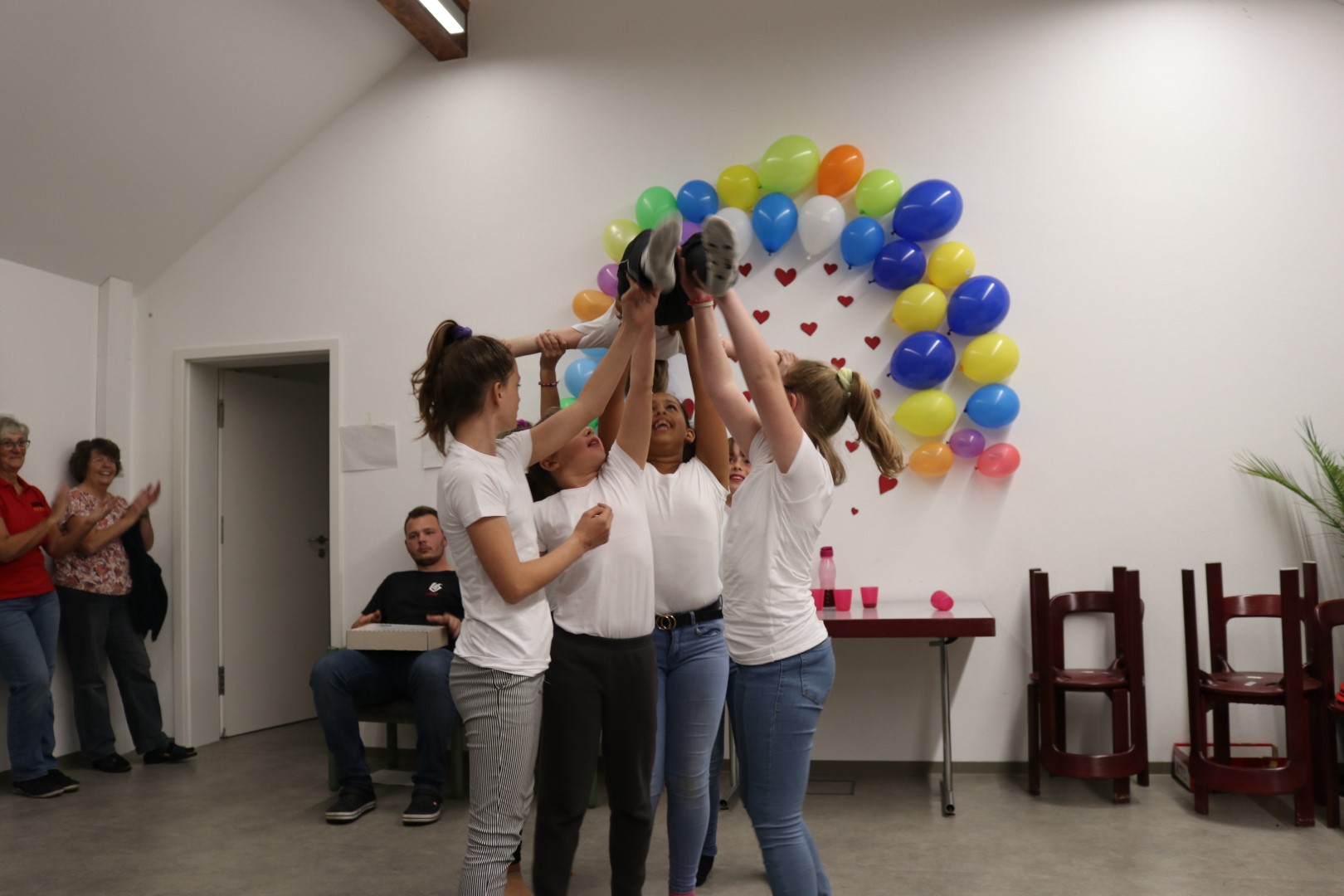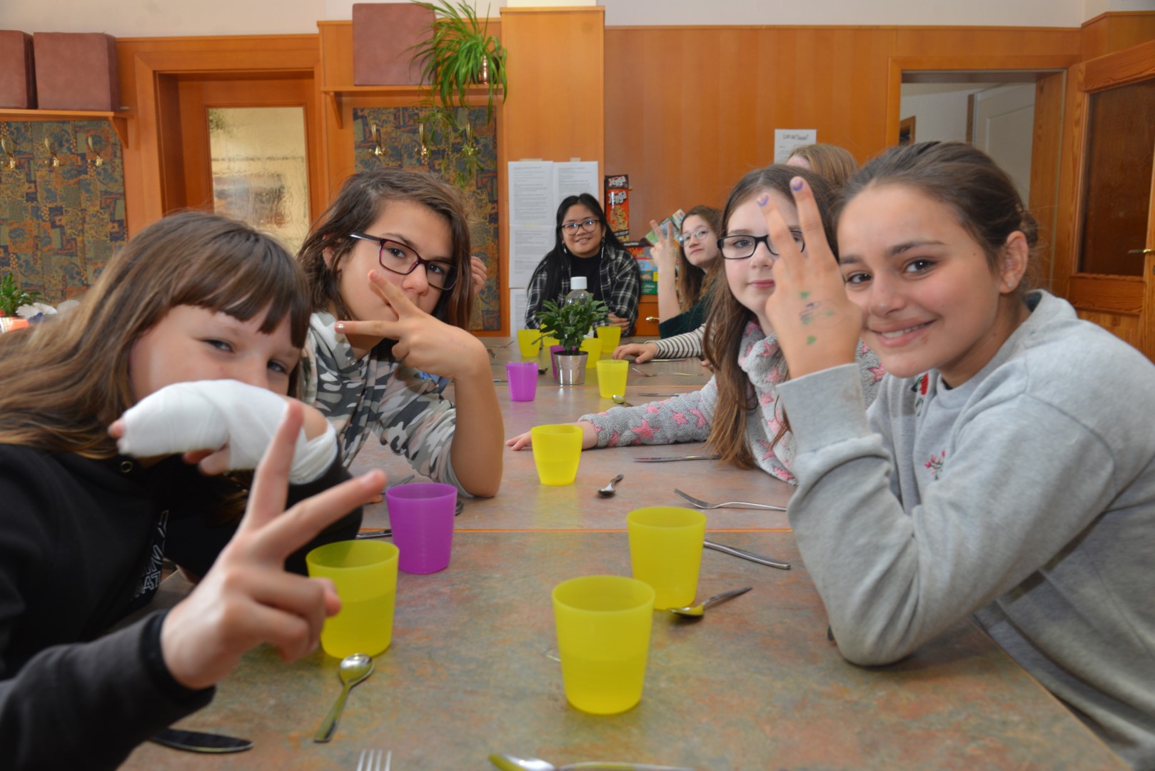 Abends führten wir die Theaterstücke auf und ernteten viel Applaus für unsere Mühe. Der Abend endete damit, dass wir einander nette Sachen auf einen Zettel, der auf unseren Rücken klebte, schrieben.
