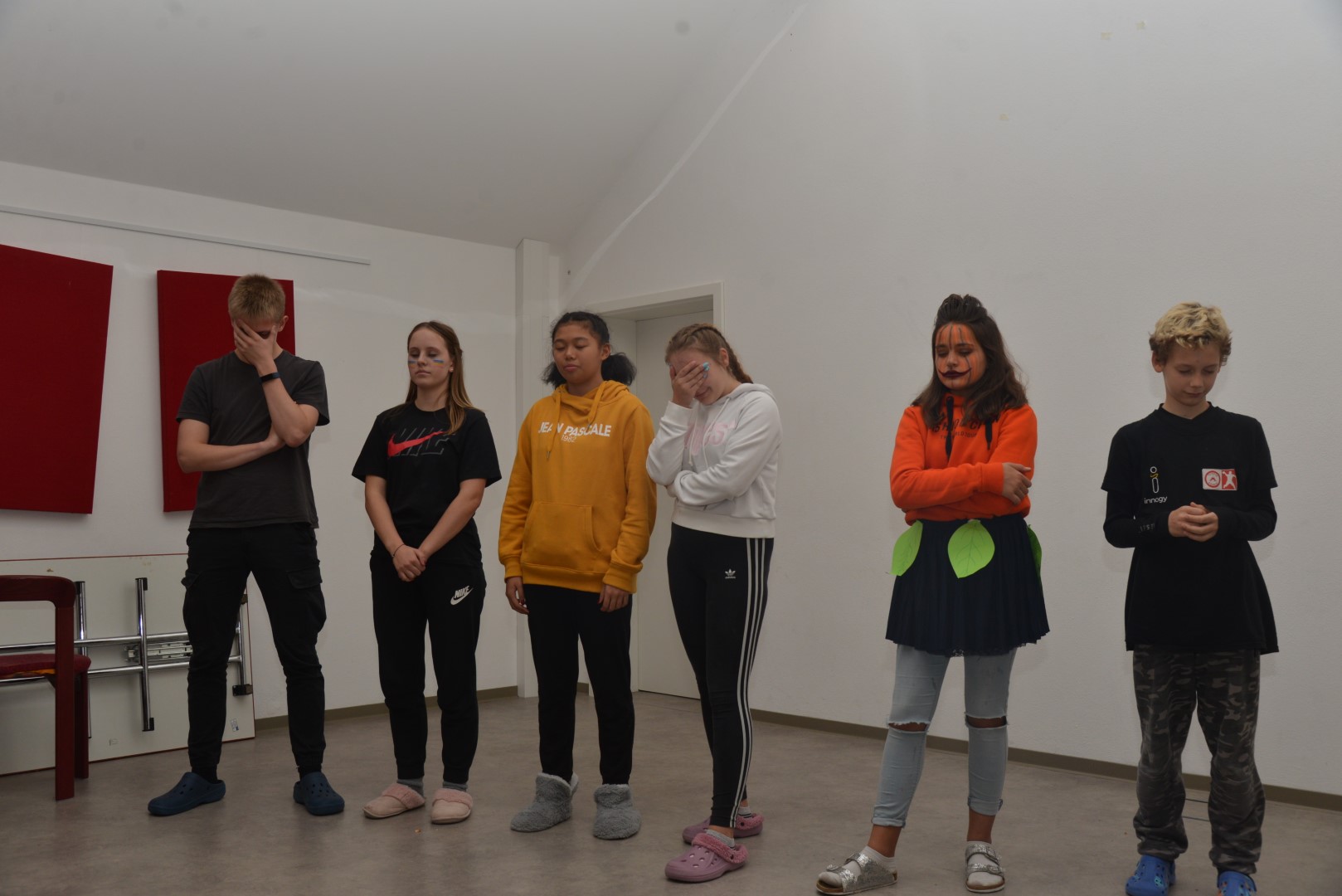 Zum Abendessen gab es Kürbissuppe und die Reste vom Mittag. Danach führten wir die Theaterstücke auf, die wir vormittags vorbereitet hatten.