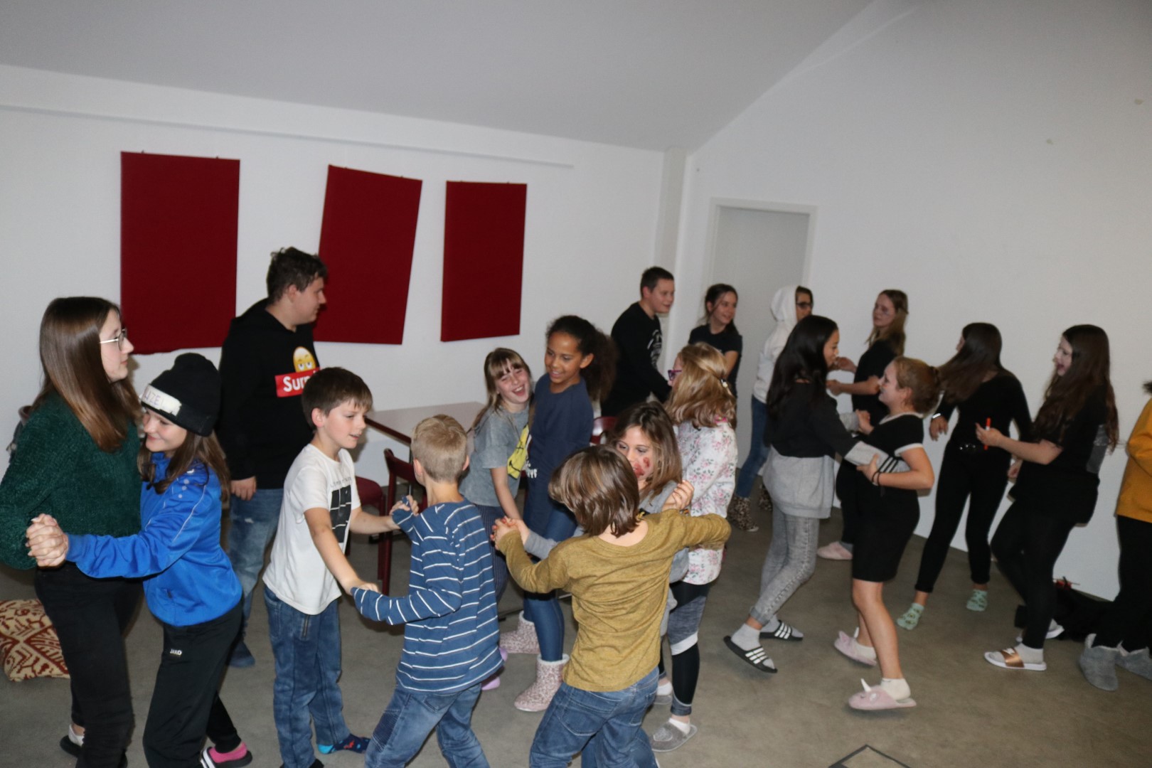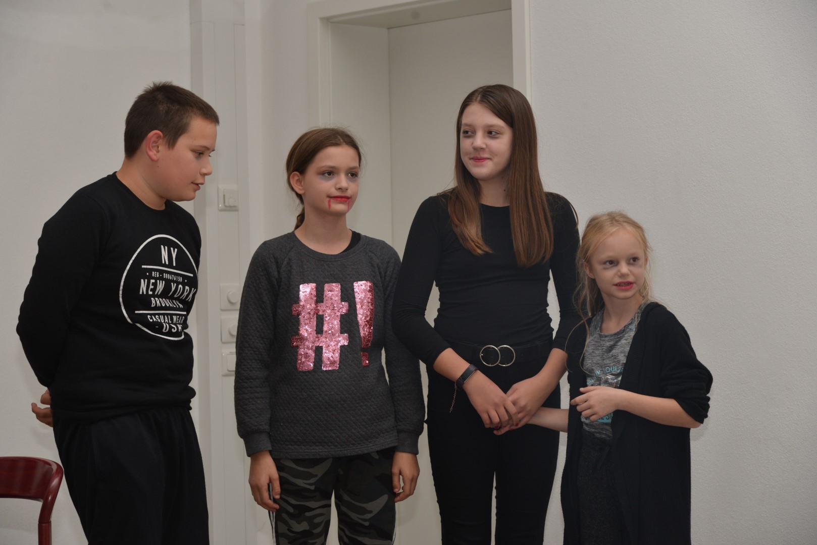 Heute haben wir Halloween gefeiert. Der Tag wurde wie üblich mit einer Morgenrunde und danach dem Frühstück. Nach dem Frühstück haben wir die Dienste verrichtet und als erster Programmpunkt mussten die sechs Rudel ein Theaterstück vorbereiten.