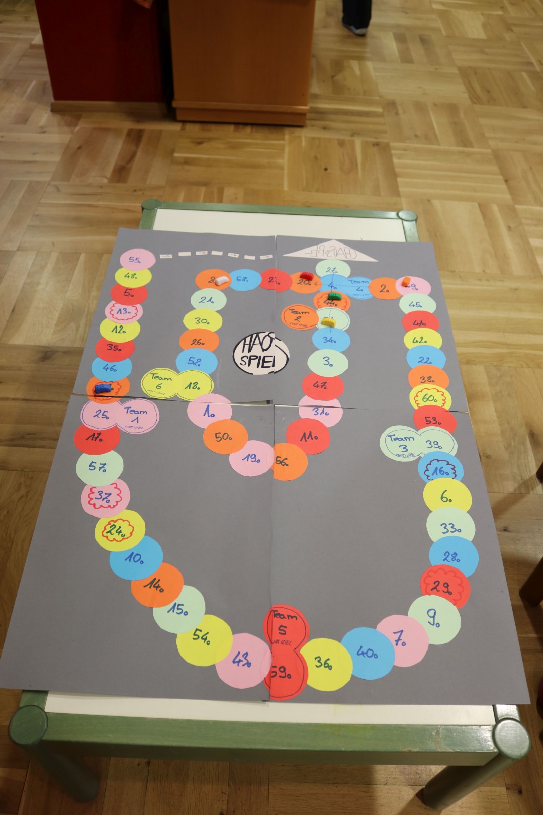 Im ganzen Haus versteckten sich die Leiter mit ihren zugewiesenen Nummern und Aufgaben. Die Kinder würfelten mit dem Sommer zusammen und machten sich anschließend auf die Suche, den Leiter mit der gewürfelten Nummer zu finden, um die Aufgabe zu erfüllen und möglichst viele Nummern auf ihren Zetteln zu sammeln.